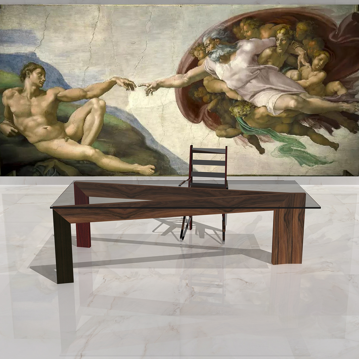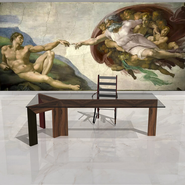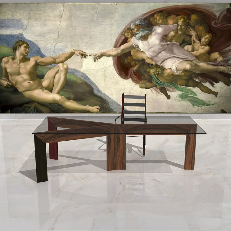 Inspirada en “La creación de Adán”, de Miguel Ángel, fresco del techo de la Capilla Sixtina (1511).